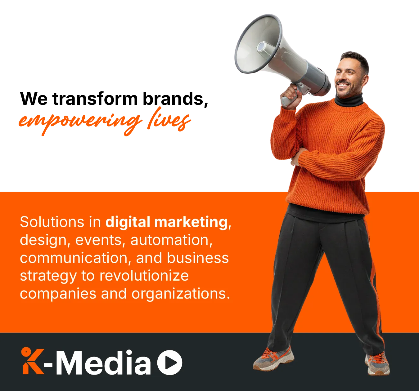 Digital marketing, design, events, automation, communication, and business solutions to revolutionize companies and organizations.